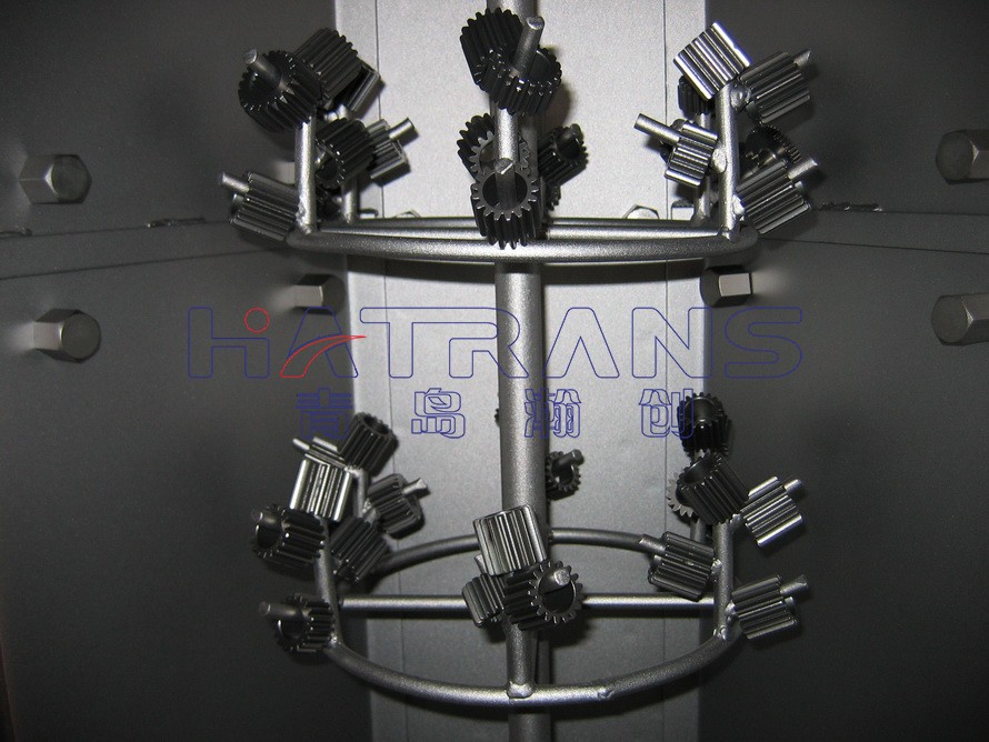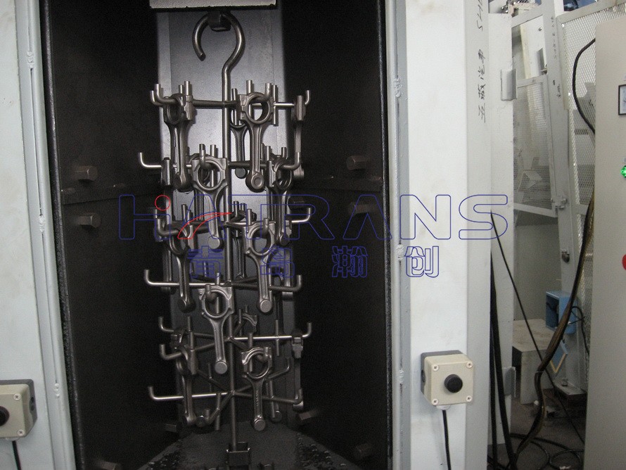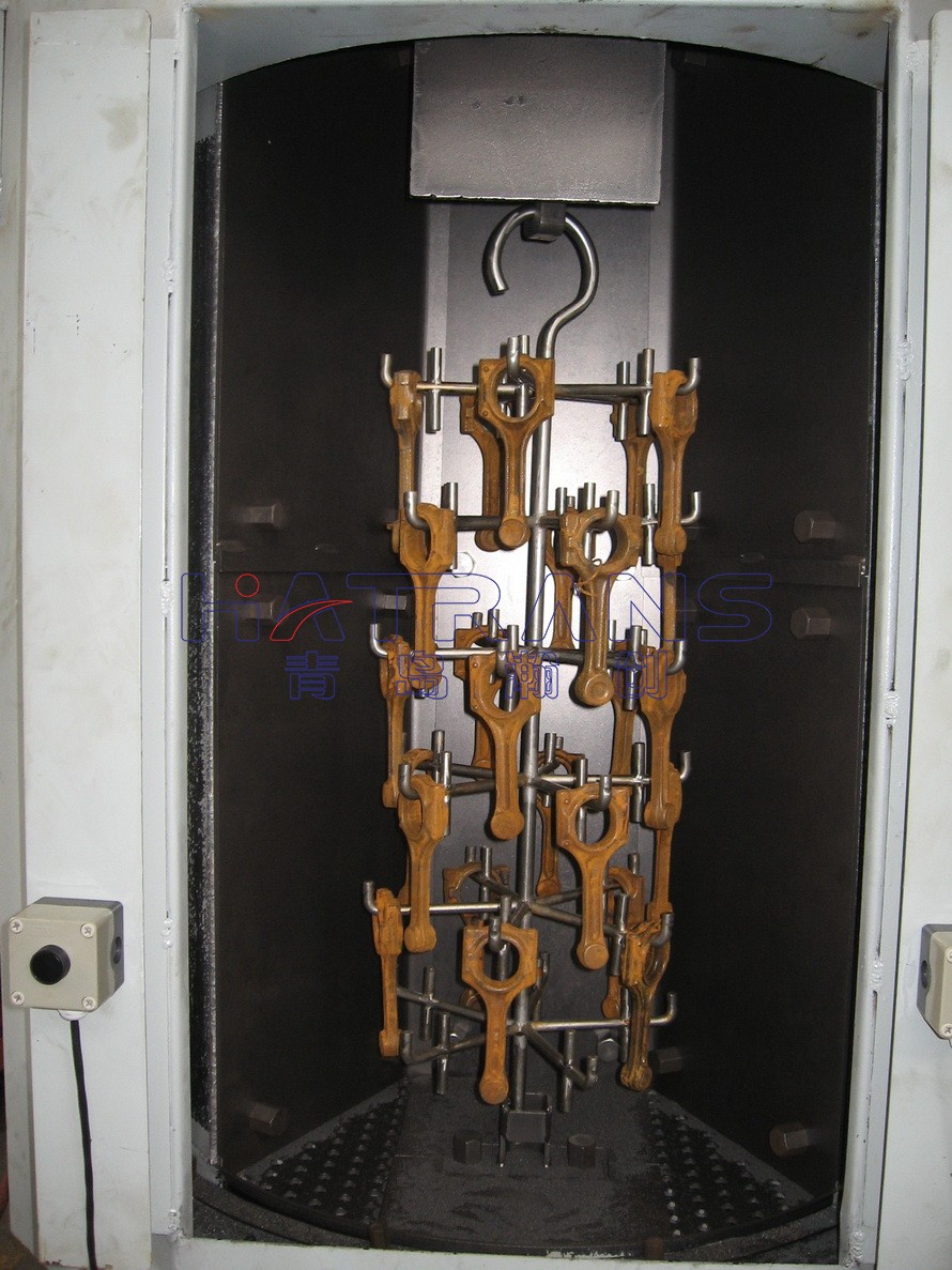 雙工位設(shè)計(jì),吊鉤公轉(zhuǎn)和自轉(zhuǎn)機(jī)構(gòu)合理搭配運(yùn)行,既方便更換工件,又確保清理效果的均勻性